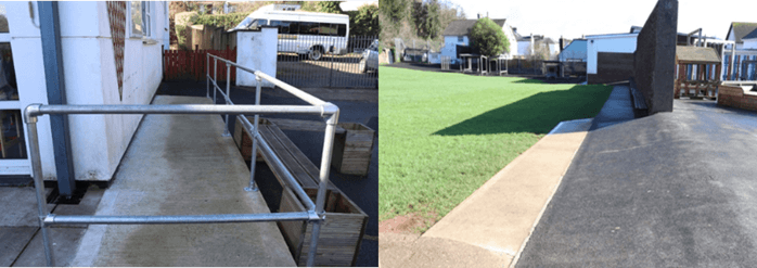 Quote from Allison Grant – School Business Manager – “Our school received funding from Torbay Council via the SEN and Disability Grant. This paid for a new ramp outside our reception class and pathway alongside our school field to allow children with disabilities and wheelchair users to be able to access the bottom playground and dinner hall. One pupil in reception has benefited massively from the new ramp which allows her to access the main reception playground independently. She has a great time playing with her friends and can get in and out of the classroom freely. Previously she had to go around the building and through other classrooms and this sometimes meant she missed some of her playtime. The access ramp along the side of the field has also made a great difference and this is used every day by pupils with disabilities, to get to the dinner hall. Before this was installed, pupils had to walk through the whole school to get there using two stair-lifts and this took up a considerable amount of pupils’ lunch break and staff time. We are really pleased with the work that has been done. It is great quality and has made a real positive difference to our pupils’ mobility and independence”.