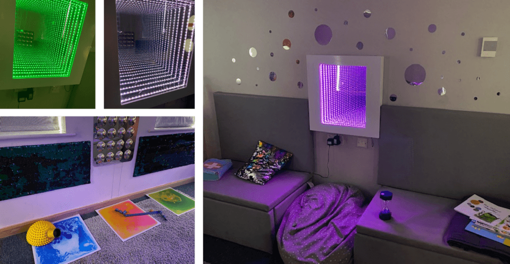 The children have benefited greatly from having a designated sensory area where they can go, or be taken to, to help to reduce their anxieties and regulate emotions. We have a number of pupils with Autism who access these spaces as part of their daily timetable. Other children, especially those in the Foundation Stage and in the Nurture provision have enjoyed using this space when they are feeling emotionally upset or dysregulated.