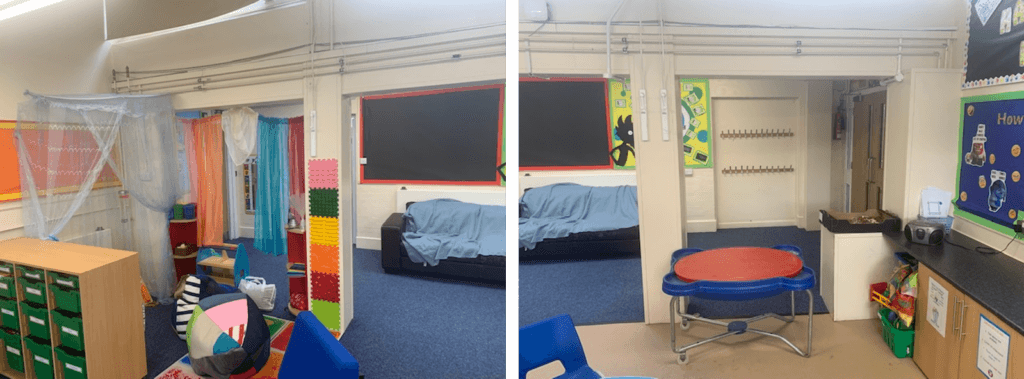 Enhancement of our Nurture style provision, particularly the breakout room; creating a safe, calming and sensory regulating room within the Nurture provision to allow children who are dysregulated to have a space that they can go to without feeling frightened or overwhelmed. Resourced with lights, blinds/window covers, projections, cushions/soft mats, tactile toys, calming music, soft play equipment and safety items e.g. plug covers etc.