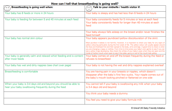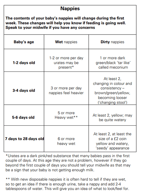 Babies have small tummies – only the size of a cherry when they are born! This means they will feed little, and VERY frequently in the first 6 weeks especially. Remember – responding to your babies cues will help you establish breastfeeding. Babies rarely need “extra” milk or additional feeds. Please speak to your health visitor if you are worried. The below signs reassure you that your baby IS getting enough milk.