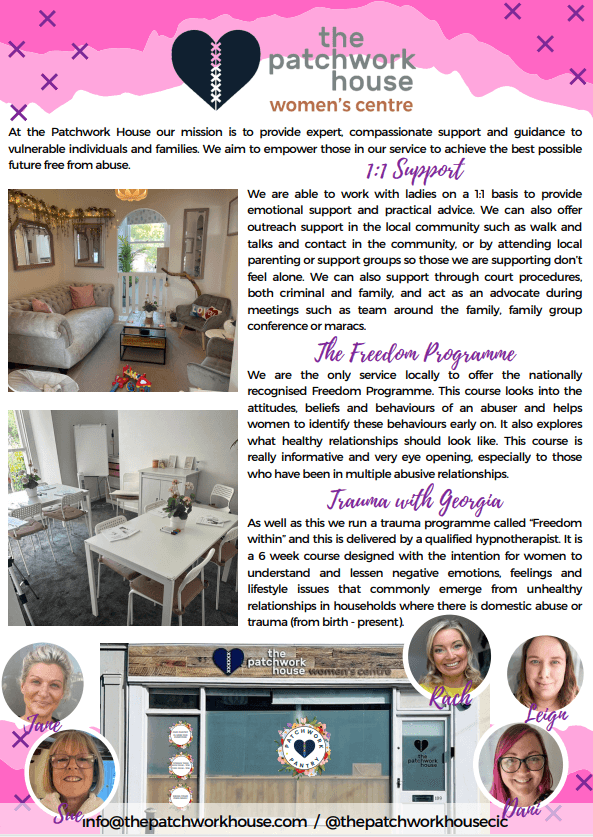 A safe space for women and children, providing non-judgemental & confidential support, guidance, and signposting. Deliver the Freedom Programme.